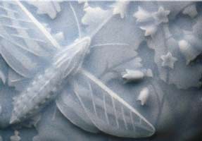 Commitment to carving continued to strengthen as she challenged her creativity with each new composition. The simple designs became more complex, the celadon glaze yielded more layers of shading and perceived depth. Janel's work in porcelain received national recognition and awards.