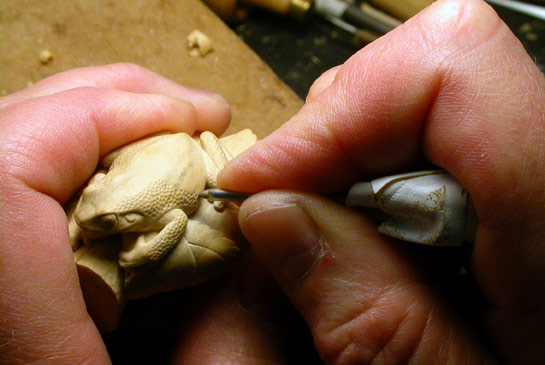 Sanding with 400 grit wet-dry sandpaper wrapped around a skewer for support.