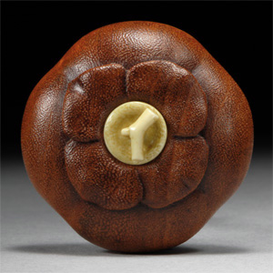 #434 Persimmon, Manju style netsuke Material: Pernambuco, Mammoth Tusk