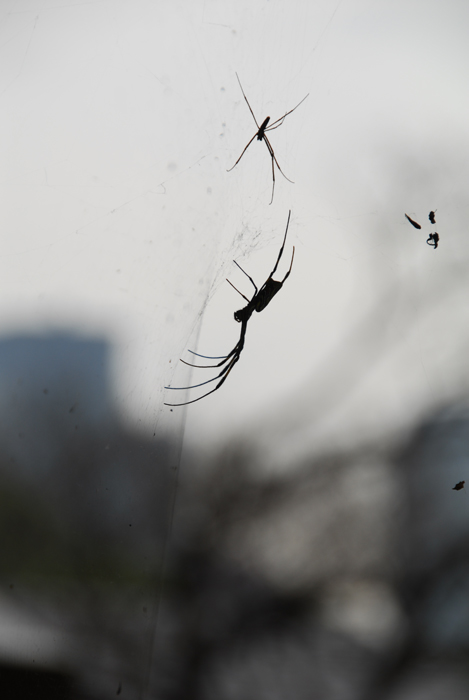 These wonderful, large, spiders were all over Tokyo. The webs spanned openings between trees up to twelve feet apart, and were sometimes shared by several spiders. I was fascintated!
