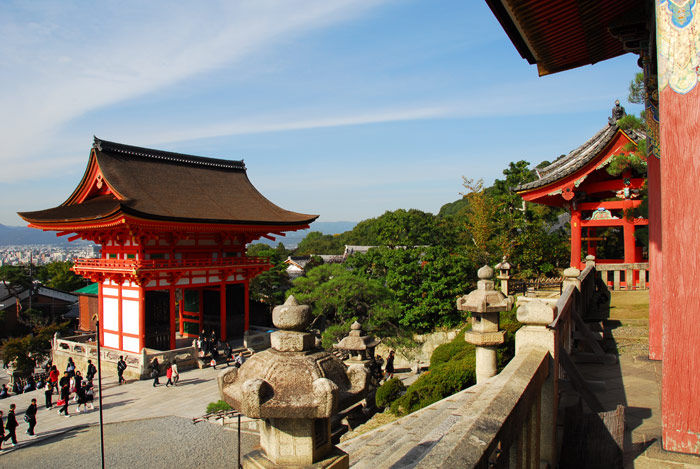 The city of Kyoto sits in a basin and has filled the valley between the mountains. Temples and shrines are built upon the mountain sides. This one offers spectacular views in all directions: the city, the temples, and the mountains.